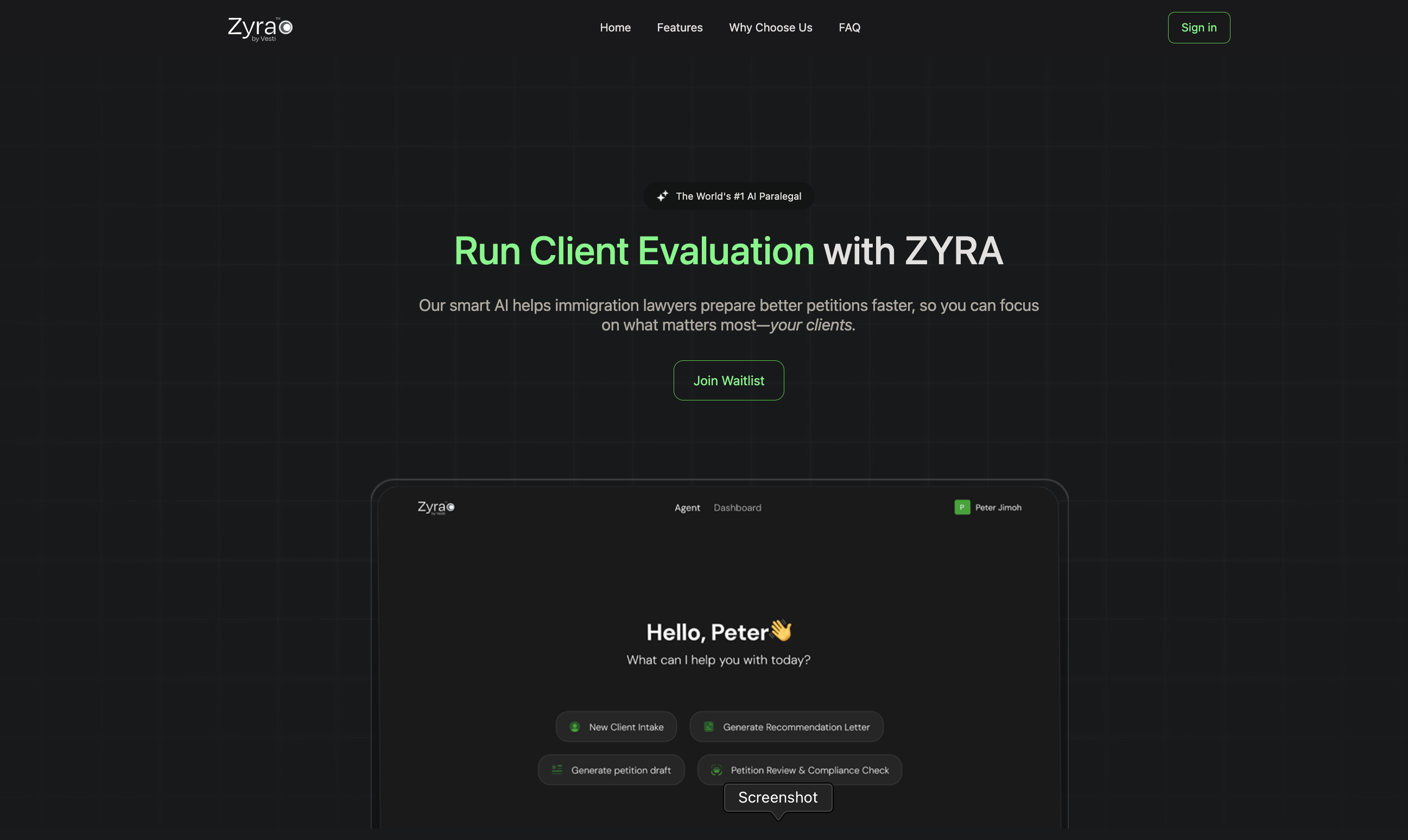 Run Compliance Check with ZYRA, smart AI helps immigration lawyers prepare better petitions faster, so you can focus on what matters most—your clients.